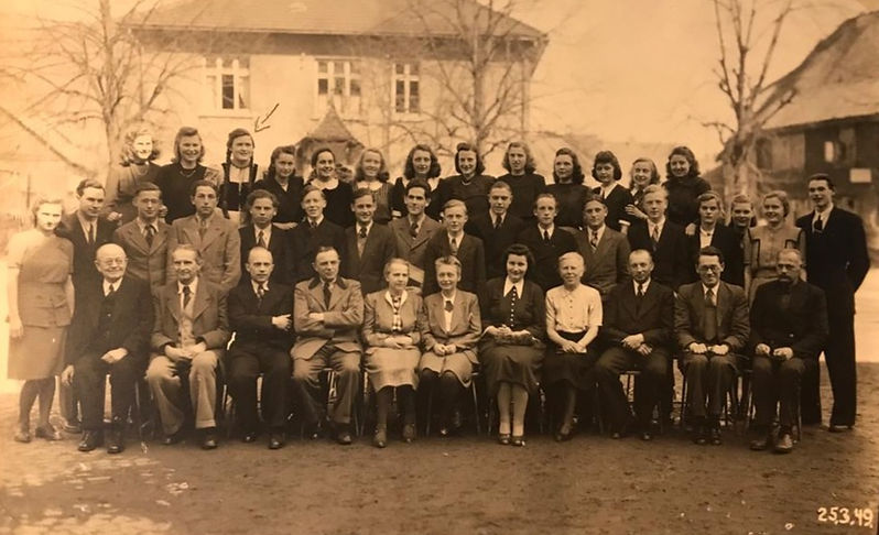 Auf dem Gruppenbild der Abschlussfeier sieht man mich als einzige Schülerin in der vorderen Reihe inmitten der Lehrkräfte. Das schicke Kostüm stammte von Verwandten aus den USA , das im Rahmen des Hilfsprojekts Care Pakete zu uns nach Lauterberg kam.