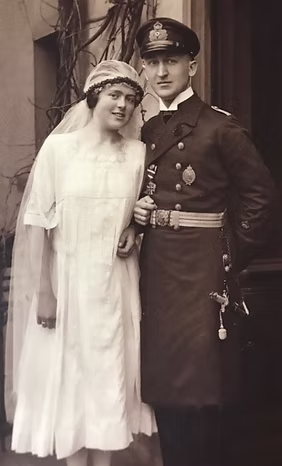 Eheschließung meiner Eltern fand 1923 in Oberhausen/ Rheinland statt, wo die Schwiegereltern in der Zwischenkriegszeit unter französischer Besatzung lebten. Man heiratete, um eine Wohnung zu bekommen. Auf dem Erinnerungsfoto sieht man den Bräutigam in seiner Uniform des ersten Weltkriegs.