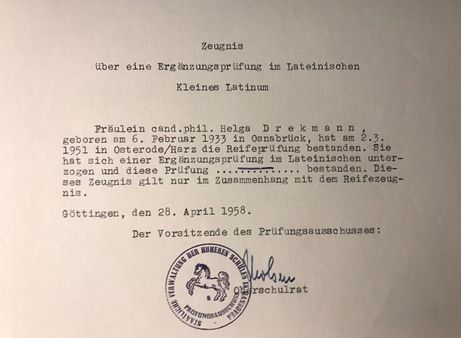 Wie dem Dokument zu entnehmen ist, reichten meine Kenntnisse für das „Große Latinum“, das auf 6 Jahre Unterricht ausgerichtet ist, nicht aus. Sieben Jahre später unterzog ich mich einer Ergänzungsprüfung im Rahmen des sog. „Kleinen Latinums“, was als Voraussetzung für meine Promotion an der Philosophischen Fakultät der Göttinger Universität galt.