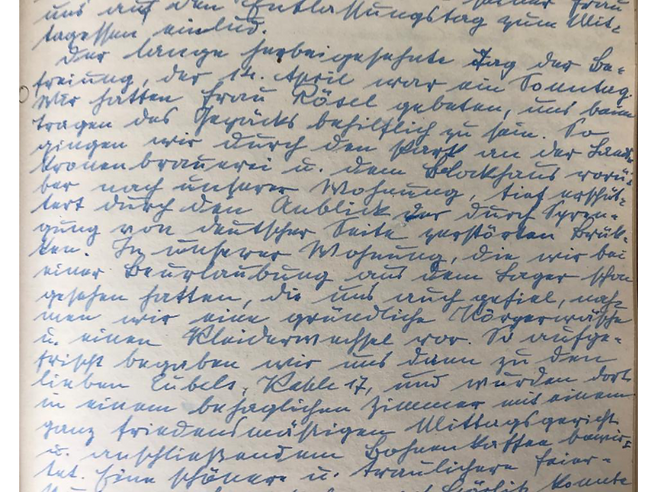 Der lange herbeigesehnte Tag der Befreiung, der 14.April, war ein Sonntag. Wir hatten Frau Rösel gebeten, uns beim Tragen des Gepäcks behilflich zu sein. So gingen wir durch den Park an der Landskronenbrauerei und dem Blockhaus vorüber nach unserer Wohnung, tief erschüttert durch den Anblick der durch Sprengung von deutscher Seite zerstörten Brücken. In unserer Wohnung, die wir bei einer Beurlaubung aus dem Lager schon gesehen hatten, die uns auch gefiel, nahmen wir eine gründliche Körperwäsche und einen Kleiderwechsel vor. So aufgefrischt begaben wir uns dann zu den lieben Eubels, Kehle 17, und wurden dort in einem behaglichen Zimmer mit einem ganz friedensmäßigen Mittagsgericht und anschließendem Bohnenkaffee bewirtet. Eine schönere und traulichere Feierstunde zur Heimkehr nach Görlitz konnte es für uns gar nicht geben.