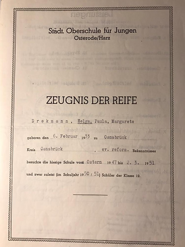 Zu der Zeit war es bei den Lauterbergern auch üblich, vor allem die Jungen, nach Osterode auf die weiterführenden Schulen zu schicken. Ebenso wie in Northeim hatte auch dort noch die geschlechtsspezifische Trennung in der höheren Bildung Bestand. Man erzählte sich, dass die Mädchenschulen zum sog. „Pudding-Abitur“ führten, denn die Lehrpläne waren auf solche Fächer wie Nadelarbeit und Hauswirtschaft ausgerichtet für eine Klientel, die später für Küche und Kinder zuständig sein würde und jedenfalls kein Universitätsstudium anstrebte. Für mich kam folglich nur der Besuch der Jungenschule in Frage. Also wurde ich an der Städtischen Oberschule für Jungen angemeldet und war während der Klassen 11 und 12 das einzige Mädchen in der Klasse. Das war allerdings nicht so einzigartig, wie es klingt, denn vor mir hatte es schon Präzedenzfälle gegeben. Die Töchter des lokalen Zeitungsverlegers hatten dieses Muster vorbereitet.